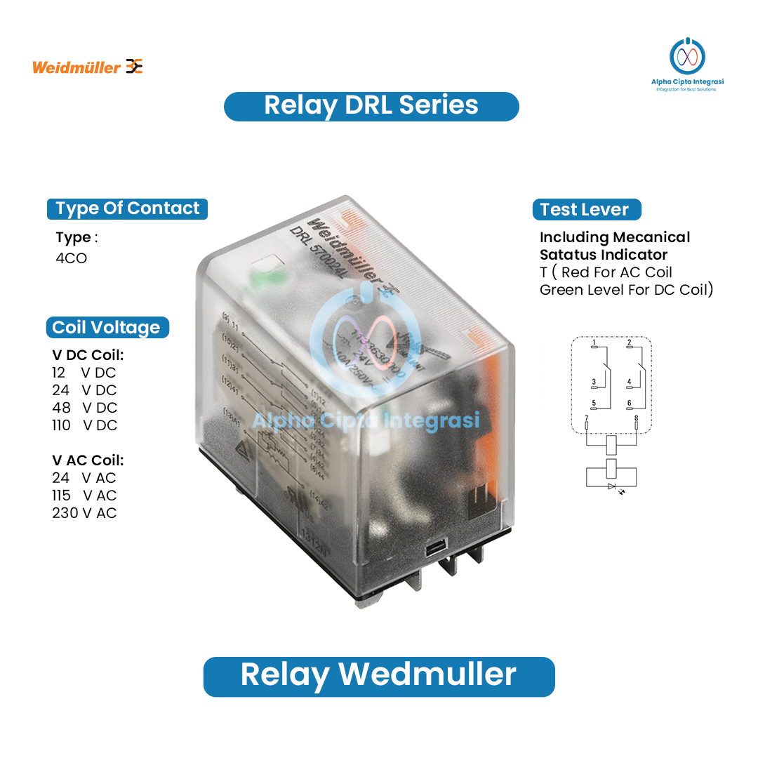 | Version | D-SERIES DRL, Relay, Number of contacts: 4, CO contact AgSnO, Rated control voltage: 12 V DC, Continuous current: 10 A, Flat blade connections (4.8 mm x 0.5 mm), Test button available: No |