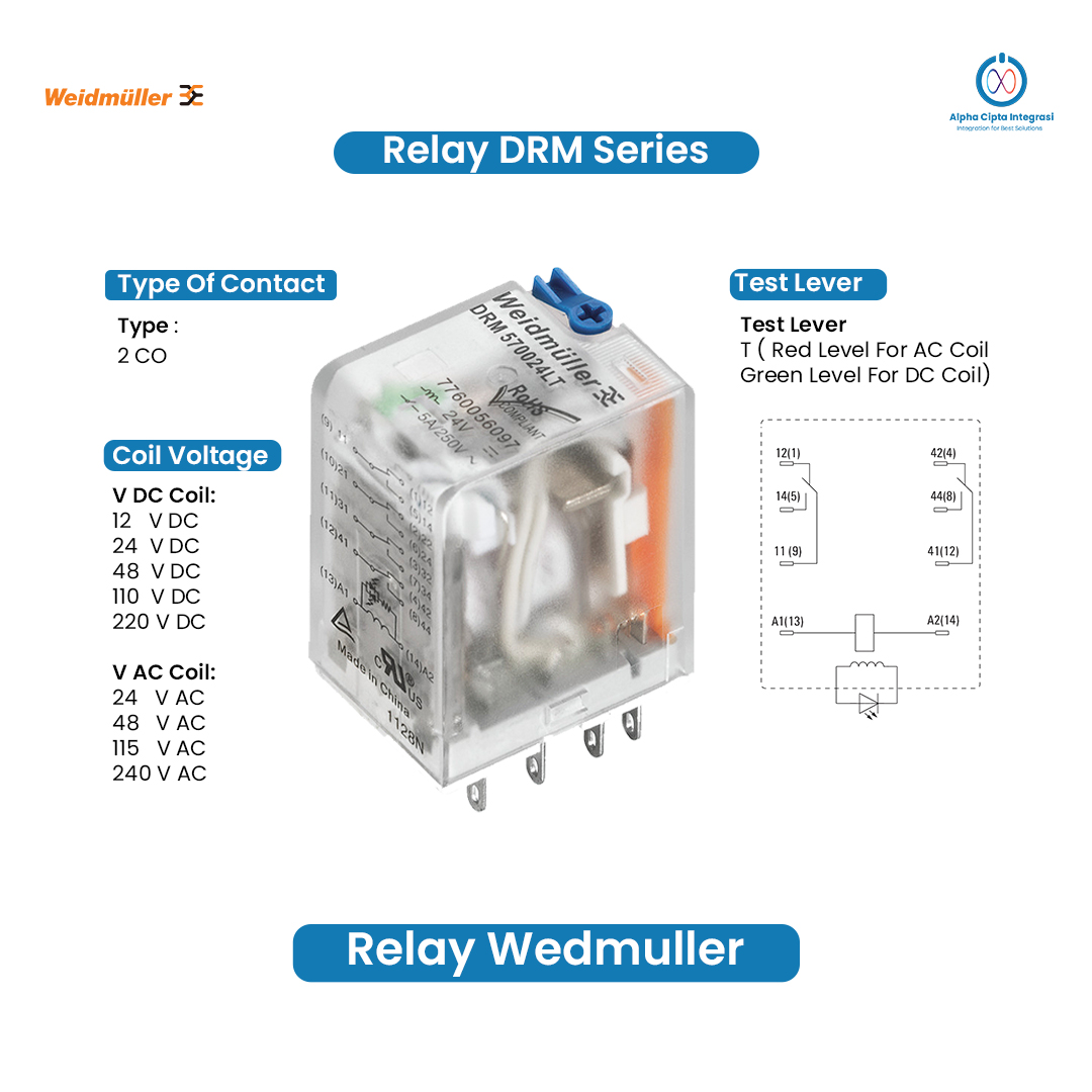 Version D-SERIES DRM, Relay, Number of contacts: 4, CO contact, AgNi flash gold-plated, Rated control voltage: 24 V DC, Continuous current: 5 A, Plug-in connection